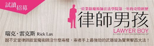 看完《律師男孩》後,我還真的想知道,作者最後依循著家族的傳統去當了律師了嗎?其實,從本書的字裡行間不難看出來,作者最後應該不會當上律師的。不過,如果他繼續寫了第二集、第三集的話,我倒是會搶著閱讀他的新作。