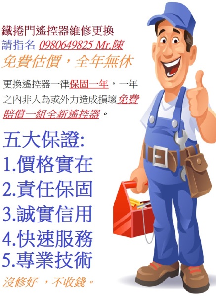 本公司由20年經驗師傅 提供鐵捲門專業維修 日夜服務 24H待命 維修專線0980-649-825陳先生 新北市鐵捲門急修 五股區鐵捲門維修 新莊區鐵捲門維修 樹林區鐵捲門維修 三峽區鐵捲門維修 新...