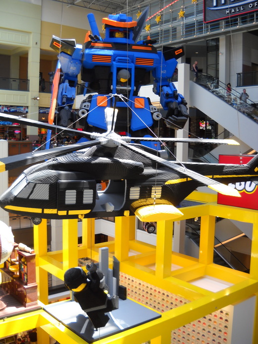 雙城的交通系統快捷便宜, 機場南郊Bloomington(布魯明頓)就是全美規模最大的美國商城(Mall of America, M0A)所在地. 附近的每家旅館都有免費機場 - 商城接送, 從那兒就能坐往市區的捷運, 而且兩小時內免費轉乘公車. MoA落成於1992年, 三層正方形的建築總面積39萬平方公尺; Bloomingdale's, Macy"s, Nordstrom與Sears 四大百貨公司分據四個角落, 門前是可容納20萬輛車的巨大停車場. 正中央的室內遊樂場也是全美第一大, 還有水族館, 30幾家餐廳, 14家一流音效聲光電影院 -- 在那裡看了一場"變形金鋼第3集"只花了八文錢哩 ! 520家商店中各大名牌旗艦店聚集, 光炫亮麗的蘋果微軟對門而立虎視眈眈, 黃色基調明亮高挑的樂高店前用積木組合的超大型金鋼高達樓上的餐飲區, 旁邊還有懸掛半空的直昇機. 在那裡可以感受到典型的美國商業文化, 資本主義的社會就是這樣嘞!