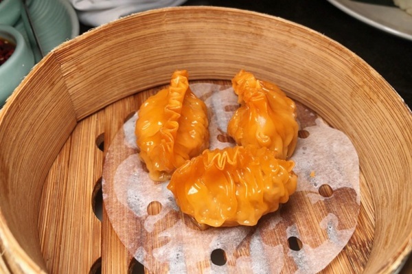 首推點心為「魚籽蒸燒賣」,外型搶眼,內餡選用油脂均勻的豬梅花及草蝦仁,入口口感紮實,魚籽的獨特香氣迷人,鮮味十足,層次分明的美味躍於舌尖,是款道地的港點。