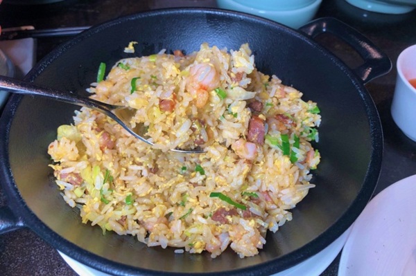 主食推薦「楊州炒飯」剛上桌的炒飯,香氣四溢,炒飯顏色金黃Q彈,採用鮮蝦、豬肉等多樣食材一起大火拌炒,才能有這樣粒粒分明、齒頰留香的炒飯吃完後令人回味。