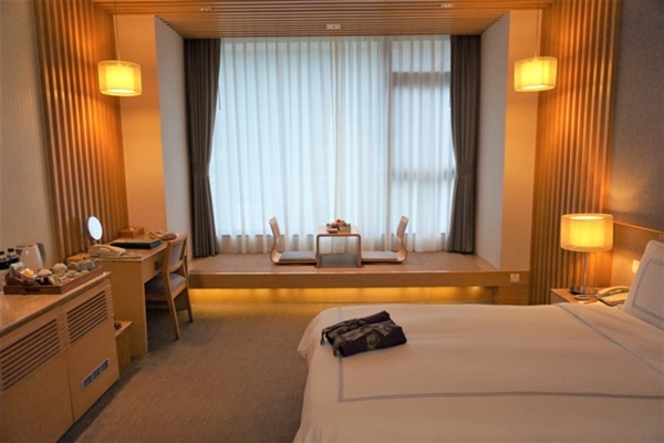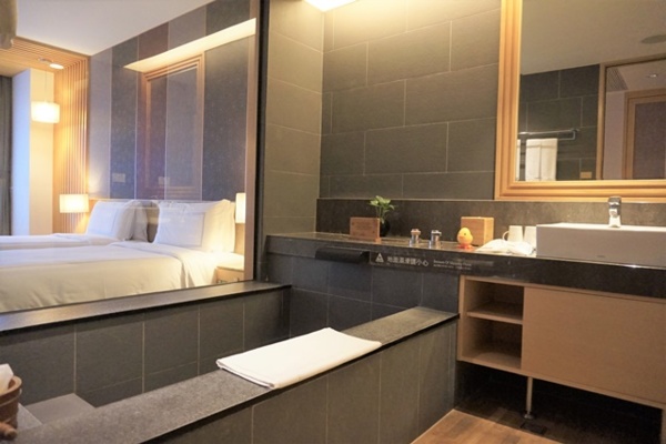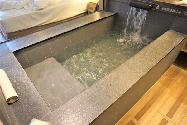 時間差不多到下午3點鐘就可以進房,客房寬敞舒適,更棒的是房內設有超級大的溫泉池,打開水龍頭裡宣洩而下的是溫熱的溫泉,這對於喜愛住溫泉飯店的旅人來說真是第一大享受。