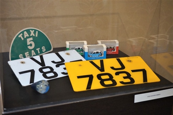 這一個櫃裡面陳列的是白黃兩款香港計程車牌及車輛模型,這對年輕的旅客來說也會比較陌生。