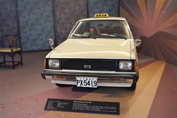 最後方則擺放了一輛復古計程車供遊客能近距離的欣賞,這輛白色計程車是出產於1988年的Yue Loong Sunny303,中文名稱為「裕隆速利303」。