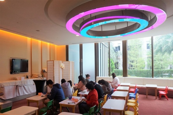 最後記得參加的就是住客限定的「懷舊手作DIY」活動,上午時段由專人協助教學製作美麗的馬賽克杯墊,只看小朋友與家長們一起很認真的拿著馬賽克磁磚在拼貼,活動約末20分鐘就能做出一款漂亮的杯墊,另有小巧可愛的迷你木屐鑰匙圈;下午時段則可以自己動手做宜蘭必買伴手禮「牛舌餅」及風味鹹蛋糕,大人小孩都能享受不同樂趣,重點全部都免費參加喔!