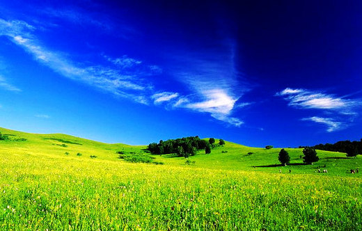 藍天白雲,塞上好風光。綿延著綠,起伏柔美的陵地,野草花星點著各種顏色,整個草原泛著淡淡的草香。