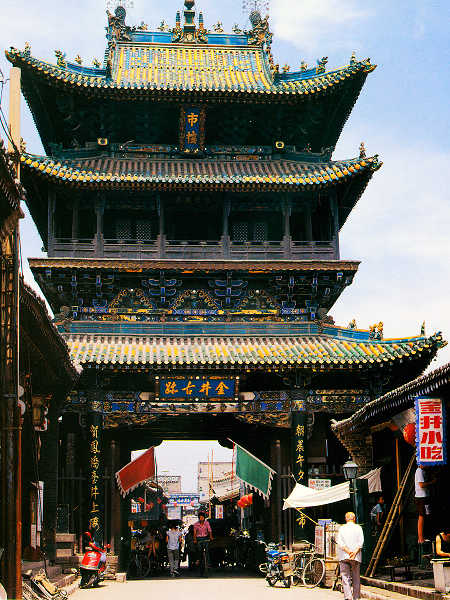 要進古城街道每人要價八十五,約台幣三百六十,兩個人付了我一百七十,簡直瞞天要價。平遙始建於西周宣王時期,有2700年的歷史,現在保留的是明清時期的風貌,是現存漢文化最完整的古城。街道呈十字型,店鋪沿街而建,鋪面結實高大,檐下有彩繪,房樑上有彩雕。鋪後面的民居是青磚灰瓦的四合院,建築牢固保持完整,現在居民有四萬人仍居住在裡面。它有四大街八小街七十二巷之稱。它是晉商發源地,著名的票號是中國第一家銀行的雛形,日盛昌誕生三年後,設下很多分支機構,鼎盛時有二十二家。有的是做蘇聯的牛皮貿易,進口皮毛。這地區盛產牛肉,本想買一些牛肉乾,看了一下是台灣合資的,便不買了。