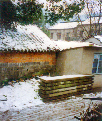 微寒的四月,因有陽光,是個暖洋洋的午後。經過桂花林再來就是,玉皇山下的石板路,走入灣延巷弄的土路。他推開竹門,裡面的房東,正在院子裡炒茶,龍井的香氣四溢。進了他陰暗的屋內,沒有家俱。連床都是一塊門板,用長椅子架起來的。我說睡門板好像是死人,他回答出了家,已無所謂的生死了。