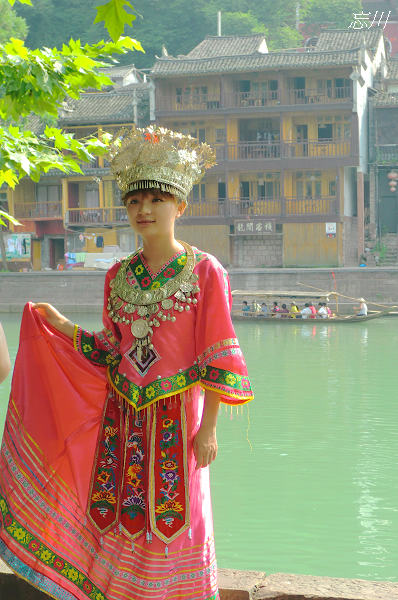 艷裙翻飛蒼白了誰心事,樹種千百行,把思念來隱藏。霧淡鳥聲絕唱,眺望無邊煙樓叢,款步過江上獨留清風潺潺。