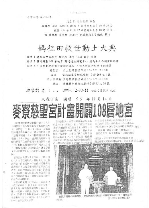 麥寮慈聖宮計劃開闢108層地宮http://www.ytbt.org/