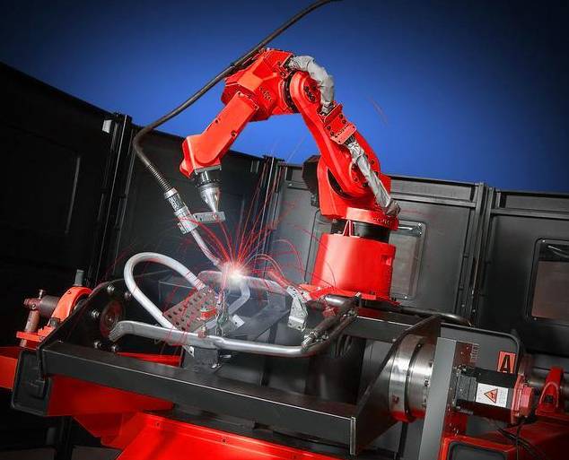鐳射加工機器人是將機器人技術應用於鐳射加工中,通過高精度工業機器人實現更加柔性的鐳射加工作業。本系統通過示教盒進行線上操作,也可通過離線方式進行編程。該系統通過對加工工件的自動檢測,產生加工件的模型,繼而生成加工曲線,也可以利用CAD數據直接加工。可用於工件的鐳射表面處理、打孔、焊接和模具修復等。