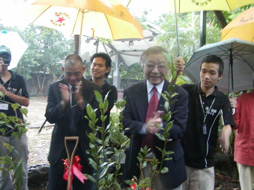 圖一:雨中鄭愁予先生在桂冠園種樹