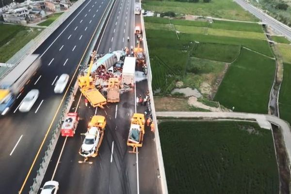 國道3號北上後龍路段,25日傍晚5點左右發生連環車禍,一台大貨車行經136.9公里時,疑似煞車不及,導致10輛車連環撞,其中一輛白色休旅車被翻覆的貨車壓住,擔任陸軍中士的張姓駕駛和懷孕5個月的趙姓妻子受困其中,但趙妻被救出後卻不肯上救護車,要警消趕快救她的丈夫,但張男被救出送醫急救後仍重傷不治。