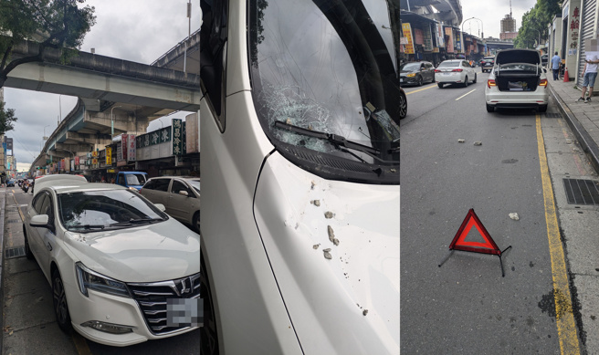 天降落石!北市環南高架石塊掉落 轎車擋風玻璃瞬間粉碎