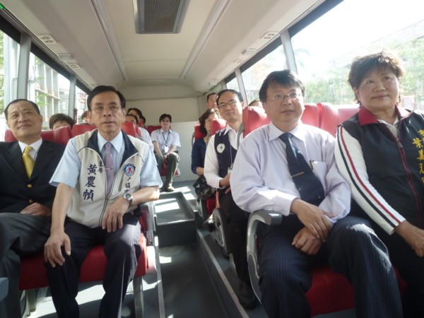 經濟部推行「智慧電動車專案」,縣府環保、交通局積極向各鄉鎮公所遊說申請電動中型巴士作為免費公車。今(15)日上午在平鎮市公所前開放試乘電動中型巴士。