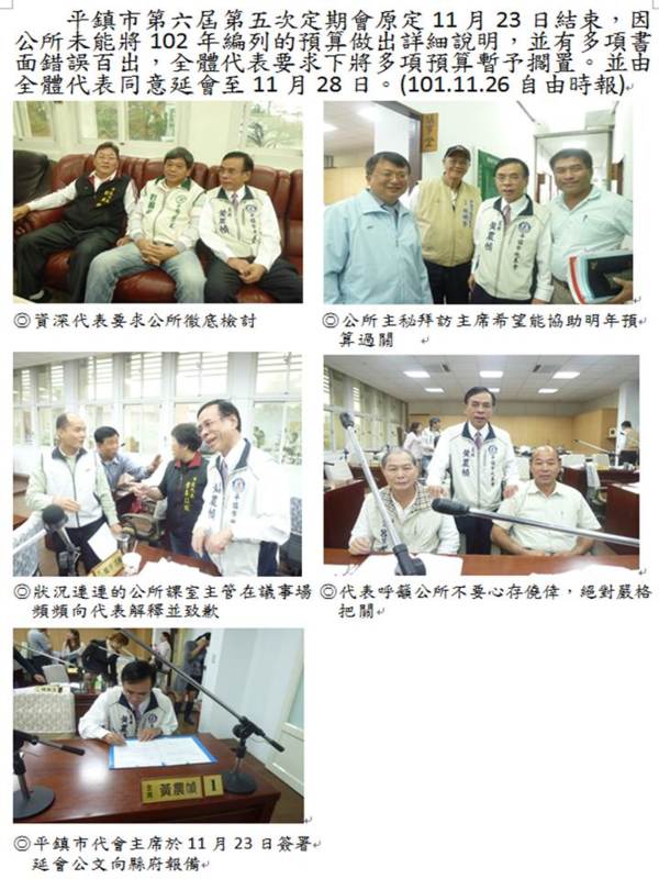 平鎮市民代表會第六屆第五次定期會延會至11月28日