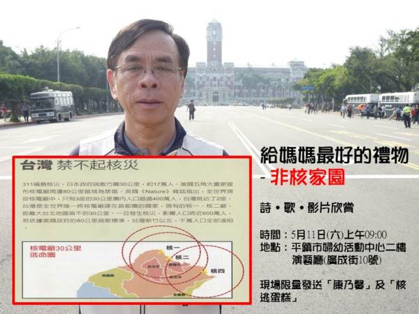 不管核電技術發展已經如何成熟,核電的危險性仍然存在,不管機率如何,只有發生和不發生兩個分野。1979年美國三哩島、1986年前蘇聯車諾比、2011年福島核災,這些歷史的教訓告訴我們,沒有百分之百的核安,只要有核能,就有高風險!台灣一旦發生核災,人民是最直接的受害者,而且這樣的傷害將延續幾千、甚至是幾萬年。我是黃農幀,台灣是我的家;我是黃農幀,我反核~