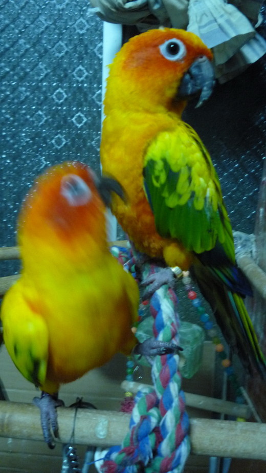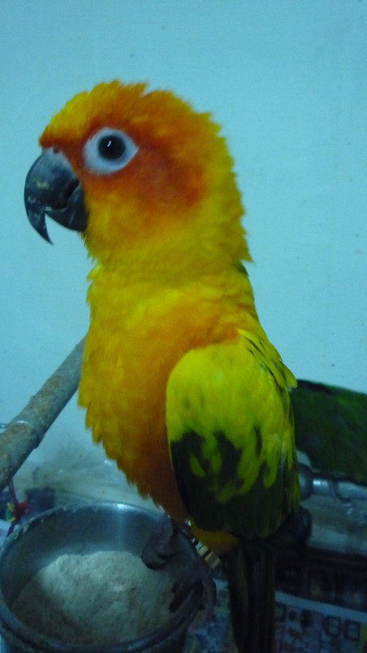 一隻體型很壯碩的鸚鵡 還沒有老婆 只有一個叫粉圓的伴