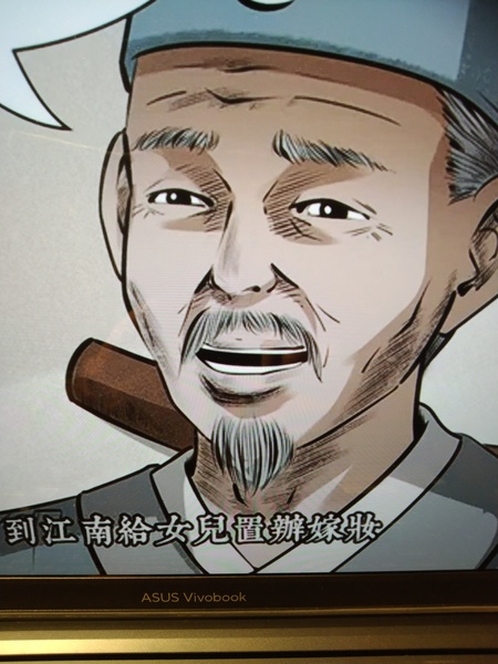 〈張老相公〉故事略以,張老相公要為女兒辦嫁妝,攜家帶眷搭船到江南採購。(註:照片翻拍自https://www.youtube.com/watch?v=MOqG_HwNZVc)