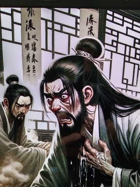 問起羅惠卿生世,才知道羅是他與婢女所生的兒子,他不敢面對,只好藉機脫身離去。(註:照片翻拍自https://www.youtube.com/watch?v=NDxpmisxQjk)