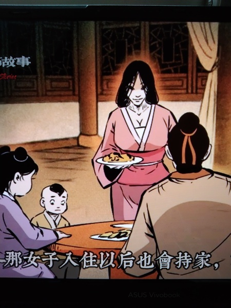〈黎氏〉故事略以,龍門縣謝某品性輕佻,三十多歲喪偶,留下二子一女,欲以續弦來照顧。(註:照片翻拍自https://www.youtube.com/watch?v=c980VVxpARY)