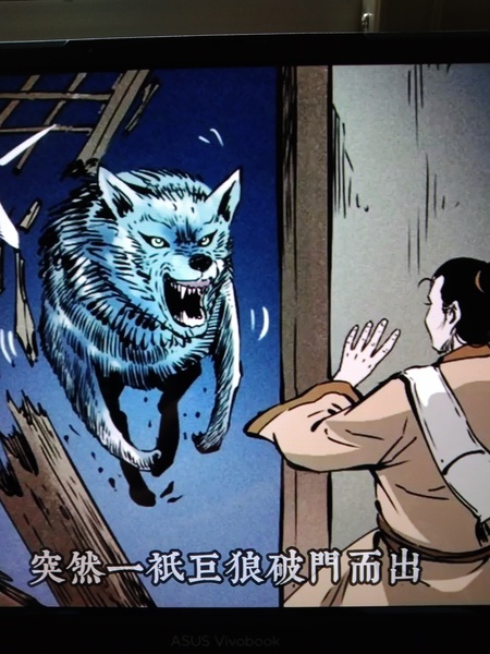 等到謝某回來,打開門時,有一隻巨狼衝門躍出。(註:照片翻拍自https://www.youtube.com/watch?v=c980VVxpARY)