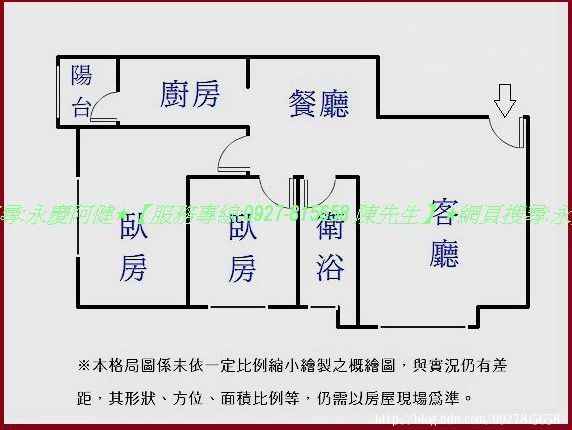 ◆建物格局: 2房/ 2廳/ 1衛/ 1陽台