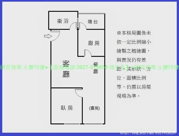 ◆建物格局: 1房/ 2廳/ 1衛/ 1陽台