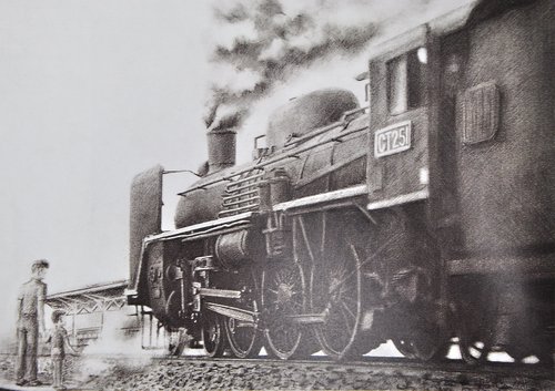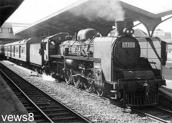 牽引普通列車抵達臺北站的CT253蒸氣機車