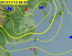 (14)日臺灣北部地區、東半部地區及馬祖地區有短暫雨,中南部山區有局部短暫雨,其他地區為多雲到晴的天氣。臺灣沿海空曠地區及澎湖、金門、馬祖、綠島、蘭嶼有8到9級強陣風出現,沿海風浪大;明日臺灣北部、東半部及恆春半島沿海地區亦有長浪發生。(15日)東北季風稍增強,氣溫略為下降,各地低溫約在19到22度左右,北部及宜花整天較涼,中南部日夜溫差仍大;天氣方面一樣是迎風面降雨的型態,北部地區及東半部地區有短暫雨,中南部山區亦有局部短暫雨,其他地區為多雲的天氣。