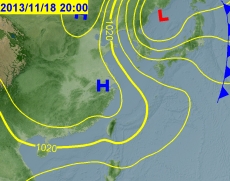 2013年第一波大陸冷氣團立冬過後11月18日報到
