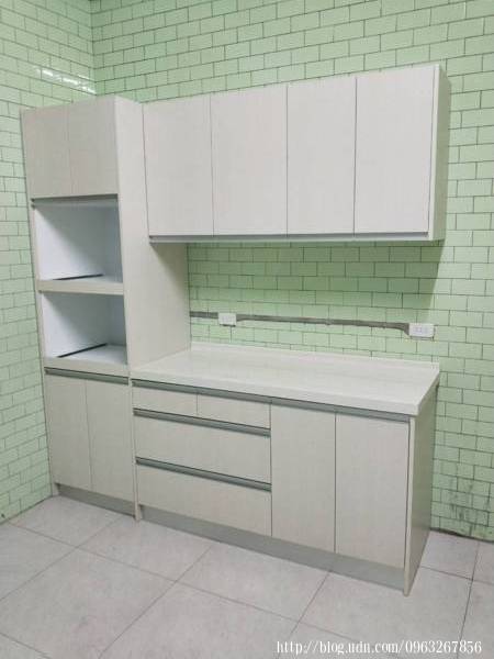 感謝~台中西區朝陽街一字型廚具完成品 此套組為210公分上下櫃一字型廚具完成品 美耐檯面:單彎3公分1949白色 上下櫃桶身:木芯板系列 美耐門板:L6153 把手:一般蝴蝶把手 水槽:內徑56公分 ...