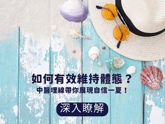 是展示美好體態的最佳季節。透過均衡飲食、規律運動和充足睡眠,我們可以有效地維持和改善體態。此外,結合中醫調養和穴位埋線,可以讓我們在短時間內達到理想的體態,充分享受夏天的每一刻。如果你也對自己的體態不滿意,不妨試試花蓮松裕堂的中醫埋線,告別不滿意的部分,重新找回身材的自信心!