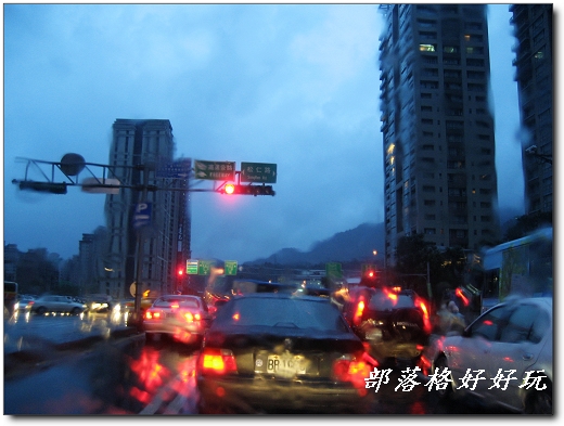 愛一心二用的如晞在等紅綠燈的片刻,搖下車窗捕捉雨中的101大樓