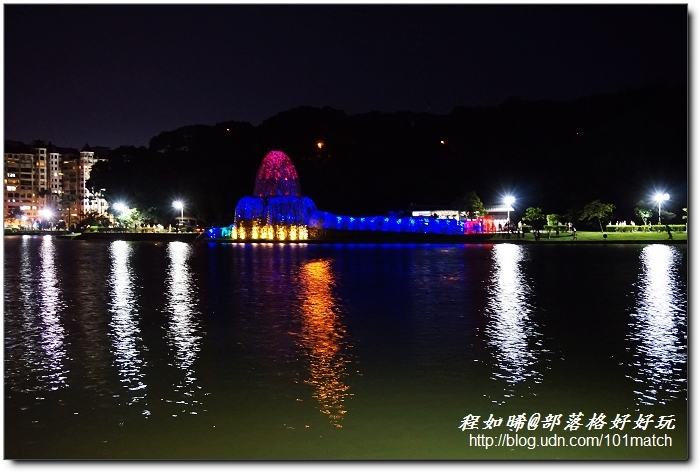 而入夜後的「碧湖織屋」,彩色LED燈變換著不同的風情,時而像湖上的一顆藍寶石,時而像璀燦的鑽石,吸引許多攝影愛好者,帶著腳架來夜拍。