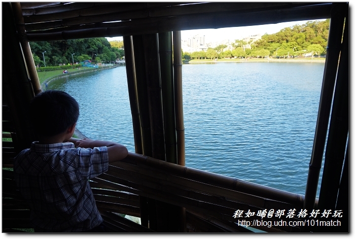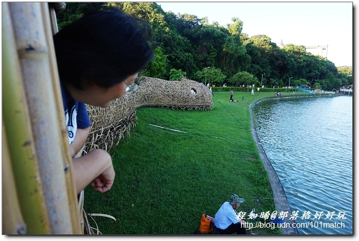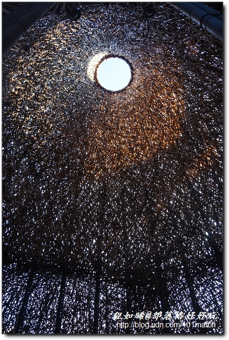 織屋底部有鋼骨,加上竹材有韌性,內部的載重約可一次容納六、七人。如晞本來還擔心在這麼大熱天,和一群人同時進到織屋會不會很熱?結果是,湖上的風從特別設計的觀景窗口一陣陣吹進來,非常舒適怡人。靜下心來,在觀景平台或坐或躺,可以從不同角度,將天光水色盡收眼底和心裡。