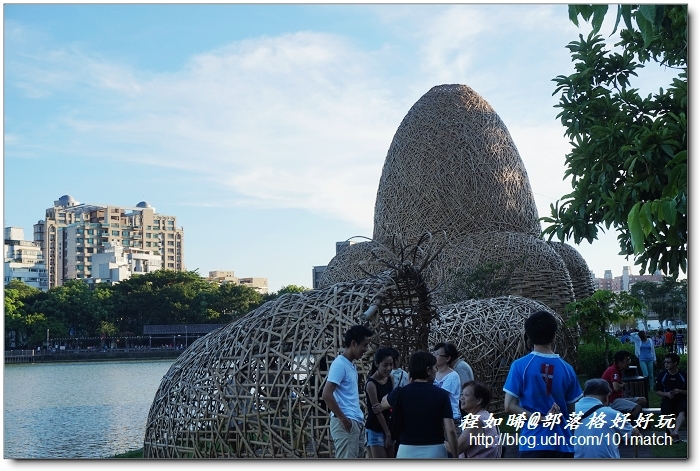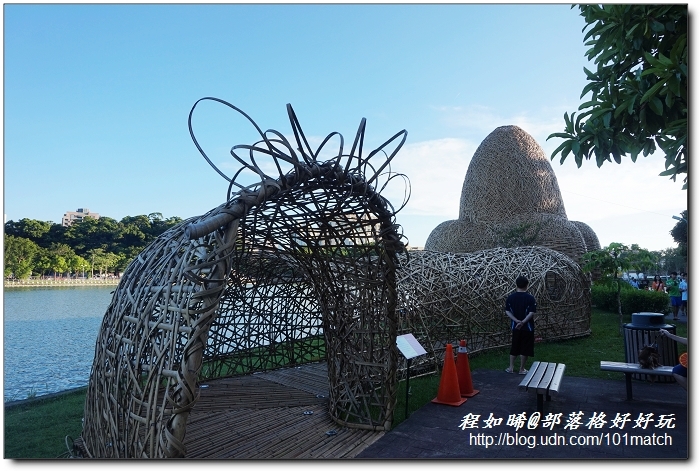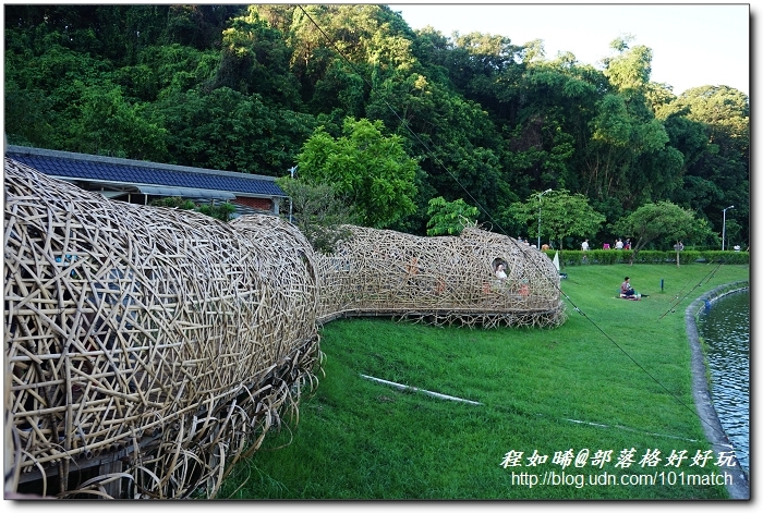 今年六月底碧湖公園的湖畔出現一座非常吸睛的大型竹編公共藝術-「碧湖織屋」,它是由台灣地景藝術家王文志帶領內湖社區大學和在地社區居民共同聯手創作,以4000根內湖在地的桂竹與孟宗竹編織、耗時一個半月才完成。