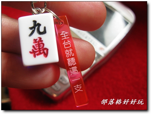 提起九萬麻將手機吊飾,青年軍副總召集人張舒福表示,九萬麻將手機吊飾構想,來自去年底的超級盃麻將大賽,沒想到一炮而紅。九萬手機吊飾剛開始只是發給青年軍作為識別標幟,由於青年軍在校園裡輔選必須低調,因此,看到九萬手機吊飾就知道是「同路人」,過年後正式問市,許多支持者爭相索取。