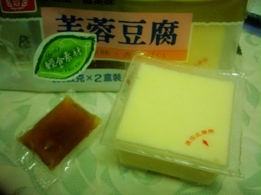 桂冠芙蓉豆腐從冰箱拿出來,打開就能吃,很方便, 當做吃布丁吧,雖然不能當飽,但求有點營養.