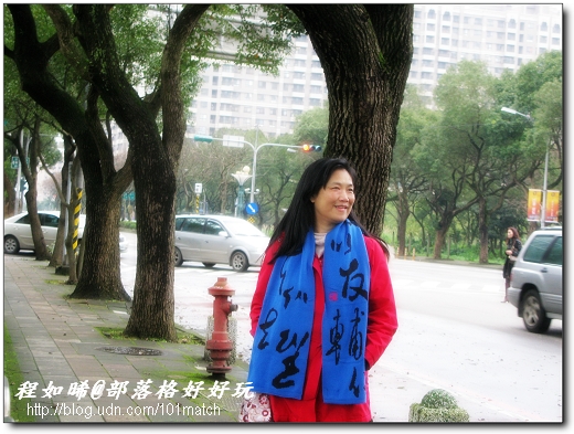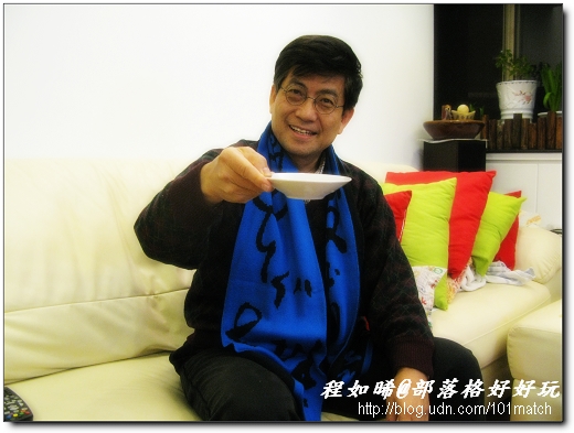 ↓論語書法圍巾則被E哥看上,已佔為己有