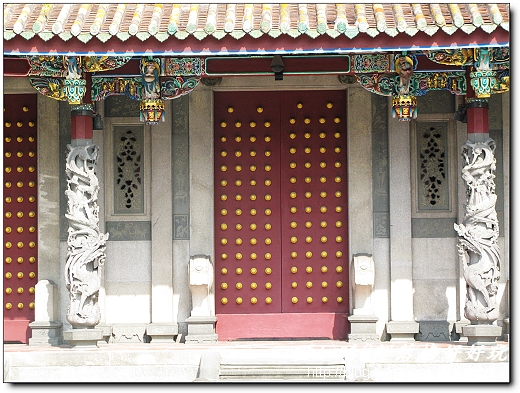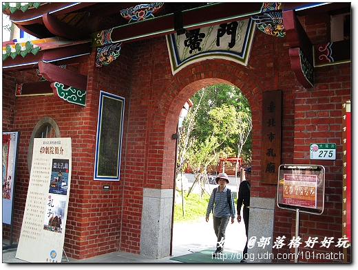 ↓櫺星門是孔廟必備的建築。臺北市孔廟的櫺星門,面寬有七間,採用歇山重簷式屋頂,有如一座殿堂,與曲阜之孔廟迥然不同。
