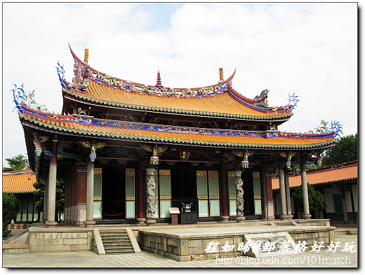 暑假時去拜訪朋友,經過進去走走看看,電影還滿有趣的,又重溫了國小國中時代的課堂文句,餘音繞樑的重複播放。發現雖然有香爐和像是廟的樣子,可是卻沒有香火,讓人覺得有些奇怪?而裡面還有一些像是詩詞吟唱的課程,想到老爸曾經告訴我可以來學這一個,記得他有時候會用河洛話唱詩,感覺頗為有趣,也許這就是老祖宗所留下來文化瑰寶吧。在裡面感受一種古老的文化氣味,孔子真實而實在的影響著華人的思維與行為。 - 3樓. **J I M**2012/11/20 21:01以前還常去孔廟邊腳小廂房準備聯考咧!