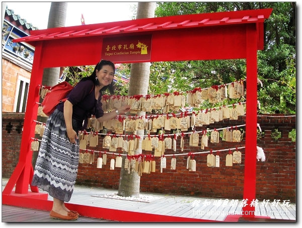 ↑如晞在台北孔廟好奇地瀏覽這麼多許願牌上都寫些什麼?