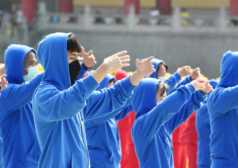 2022年11月12日,臺灣部分法輪功學員約五千人,齊聚在中正紀念堂的自由廣場演煉五套功法。(記者孫湘詒/攝影)