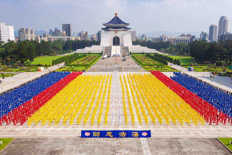 臺灣法輪功學員每年在中正紀念堂自由廣場,盛大舉辦的排字活動都分外引人注目。11月12日,有約5千名來自臺灣各地的部分法輪功學員齊聚一堂排字,用心排出「法輪圖形」及「法輪大法 洪傳30周年」,景象壯觀殊勝。