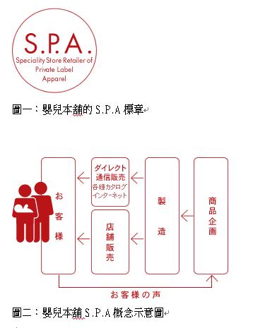 嬰兒本舖的成功,除了在於清楚地定位自身為自有品牌服裝專門店 (S.P.A:Speciality store retailer of Private label Apparel)之外(如圖一:S.P.A標章),更重要的是嬰兒本舖以提供完美服務(Service)、完美價格(Price)與完美行動(Action)的企業自居,並且透過建立完整的顧客滿意(C.S)系統,從商品的企劃、製造到販售,全部由自社進行作業的體制,服務顧客,創造顧客滿意。