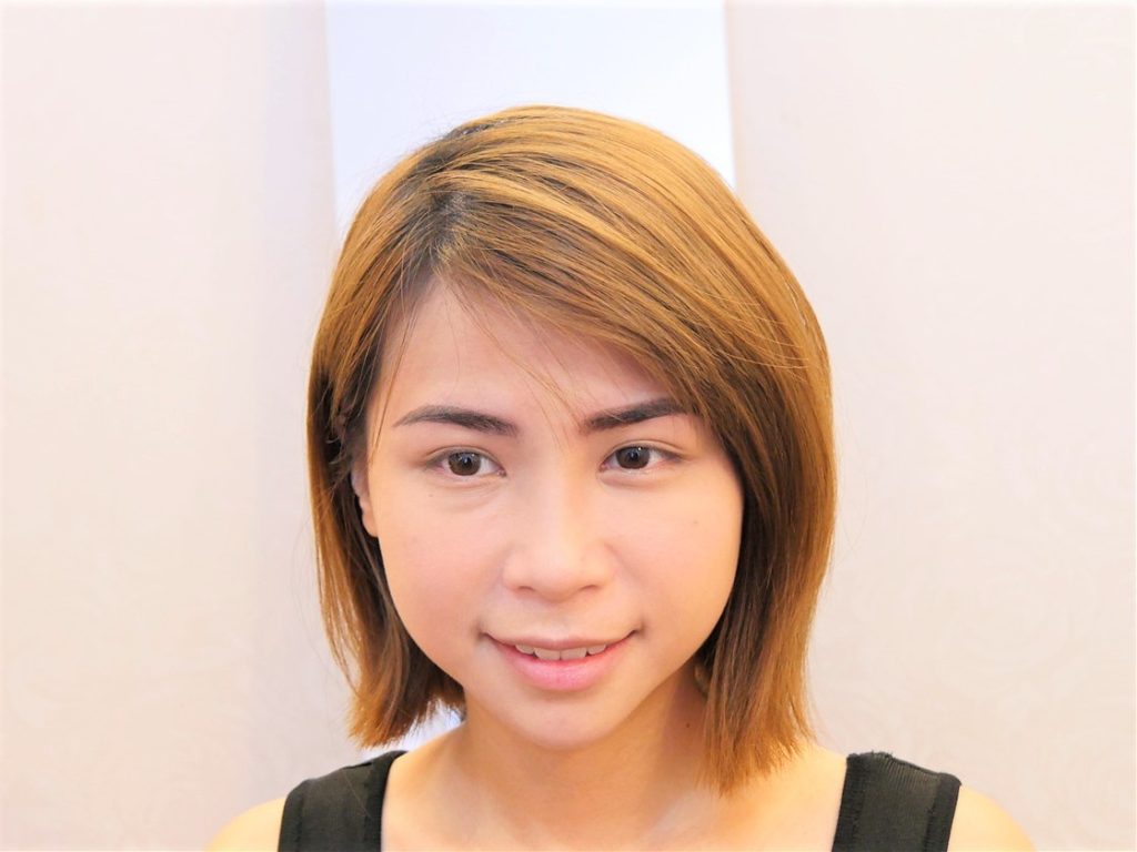 眉峰乾淨俐落但加長眉尾,而且眉間還留兩指寬度(想開運必備@@),讓她大為滿意呢^0^