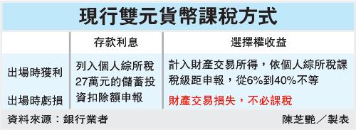 但行庫主管表示,雙元貨幣商品的風險包括本金幣別轉換、匯兌、商品條件變更和稅賦,並非完全保本且零風險。