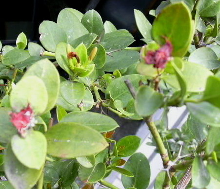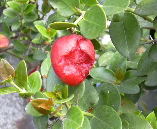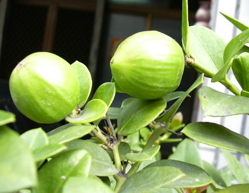 前一陣子的菓子長的很漂亮,媽媽還摘了幾顆來吃,結果,燕子回來以後,就發現樹上有菓子被吃掉的蒂頭留著(圖一)我懷疑的留意了幾天,終於讓我看見燕子飛下來啄食的畫面,原來兇手真的是燕子,吃的時候發現我靠近了,就趕緊飛走,留下了吃了一半的菓子(圖二)。