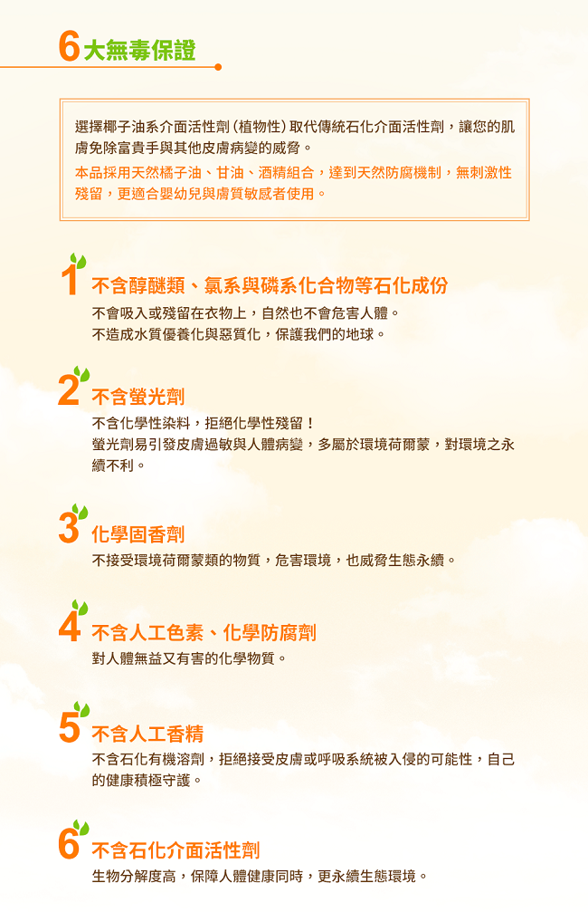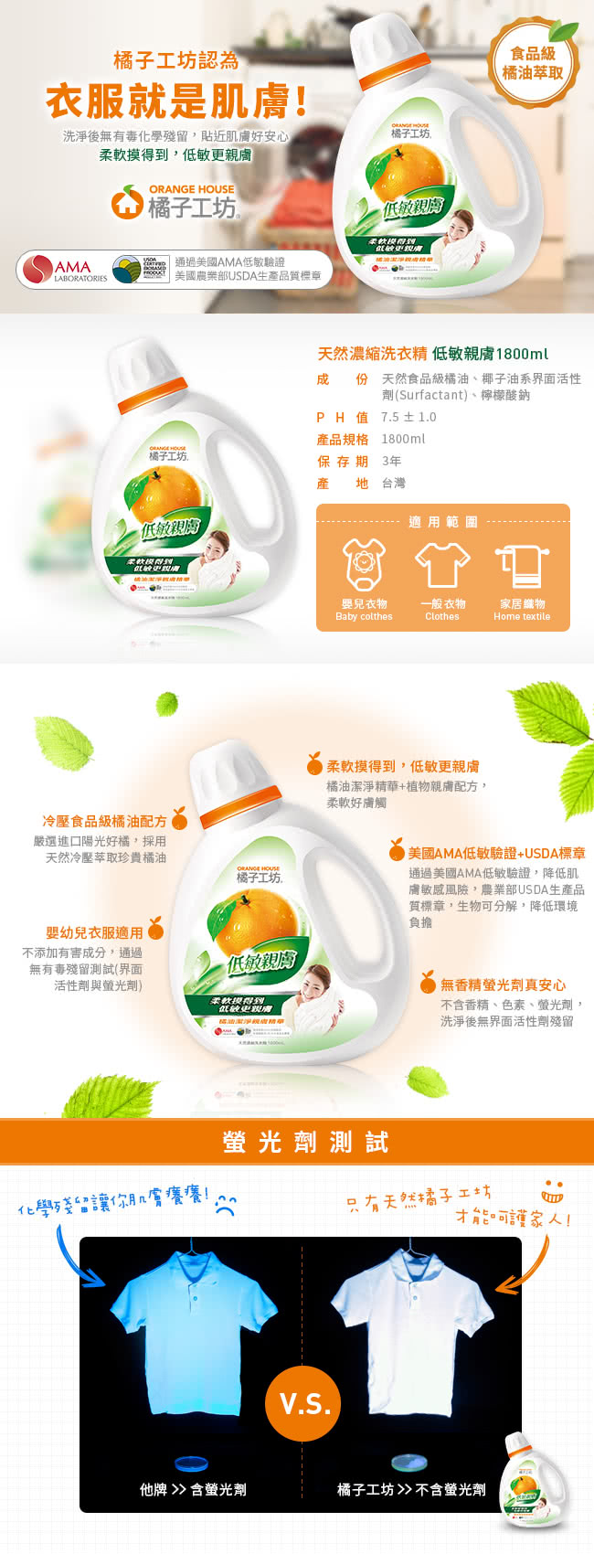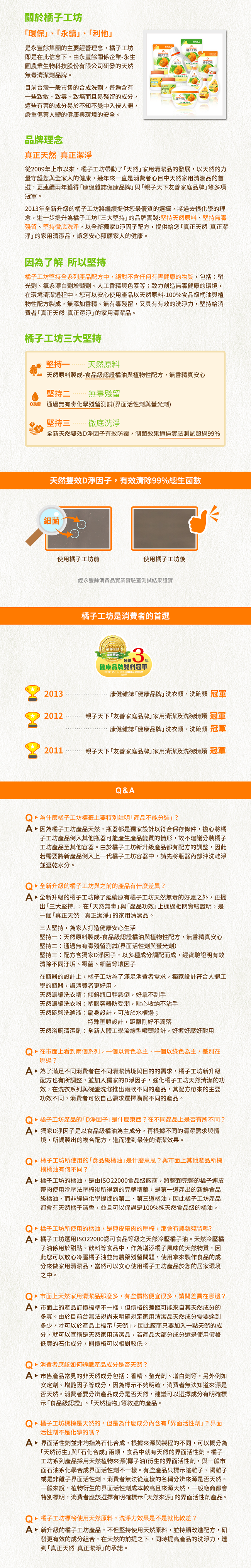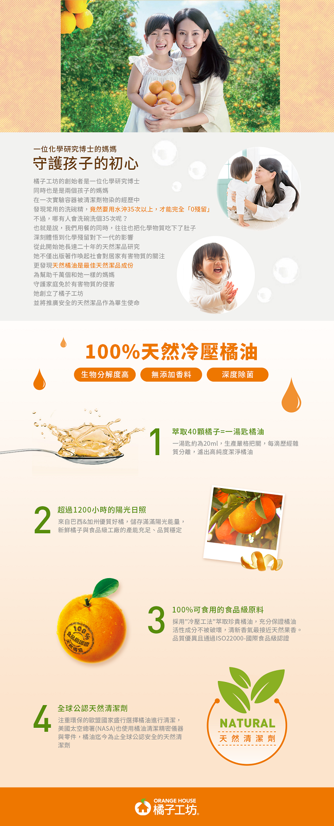 橘子工坊認為餐具就是食物衣服就肌膚堅持一天然原料製成-食用級認證橘油與植物性配方,無香精真安心堅持二通過無毒化學測試(介面活性劑與螢光劑)堅持三全新天然雙效D淨因子有效防霉,制菌效果通過實驗測試超過99?p>